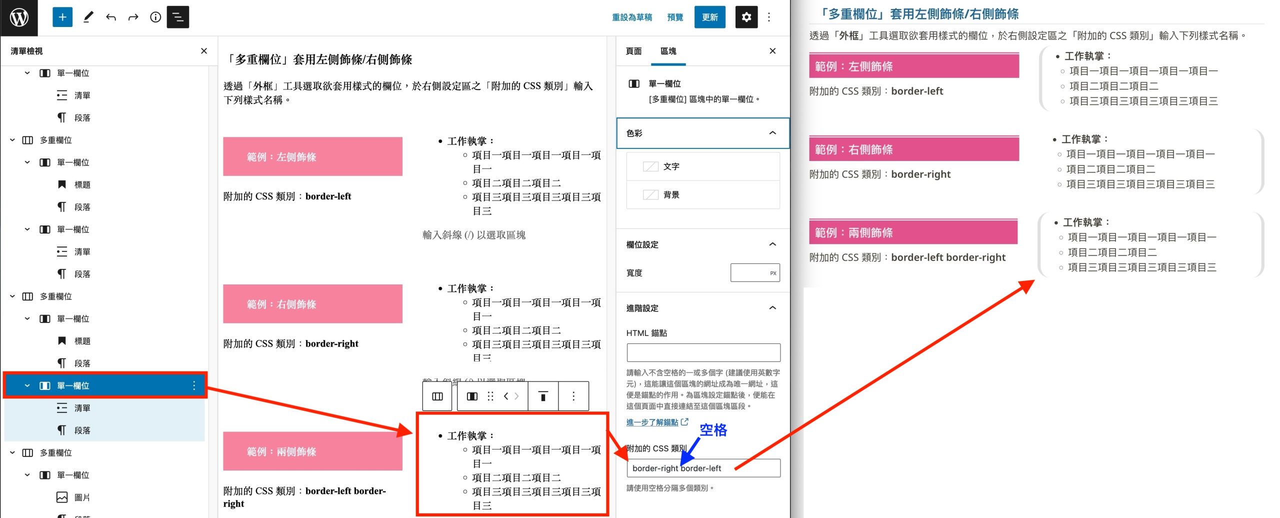 - 「多重欄位」套用左側飾條/右側飾條 border-left與border-right